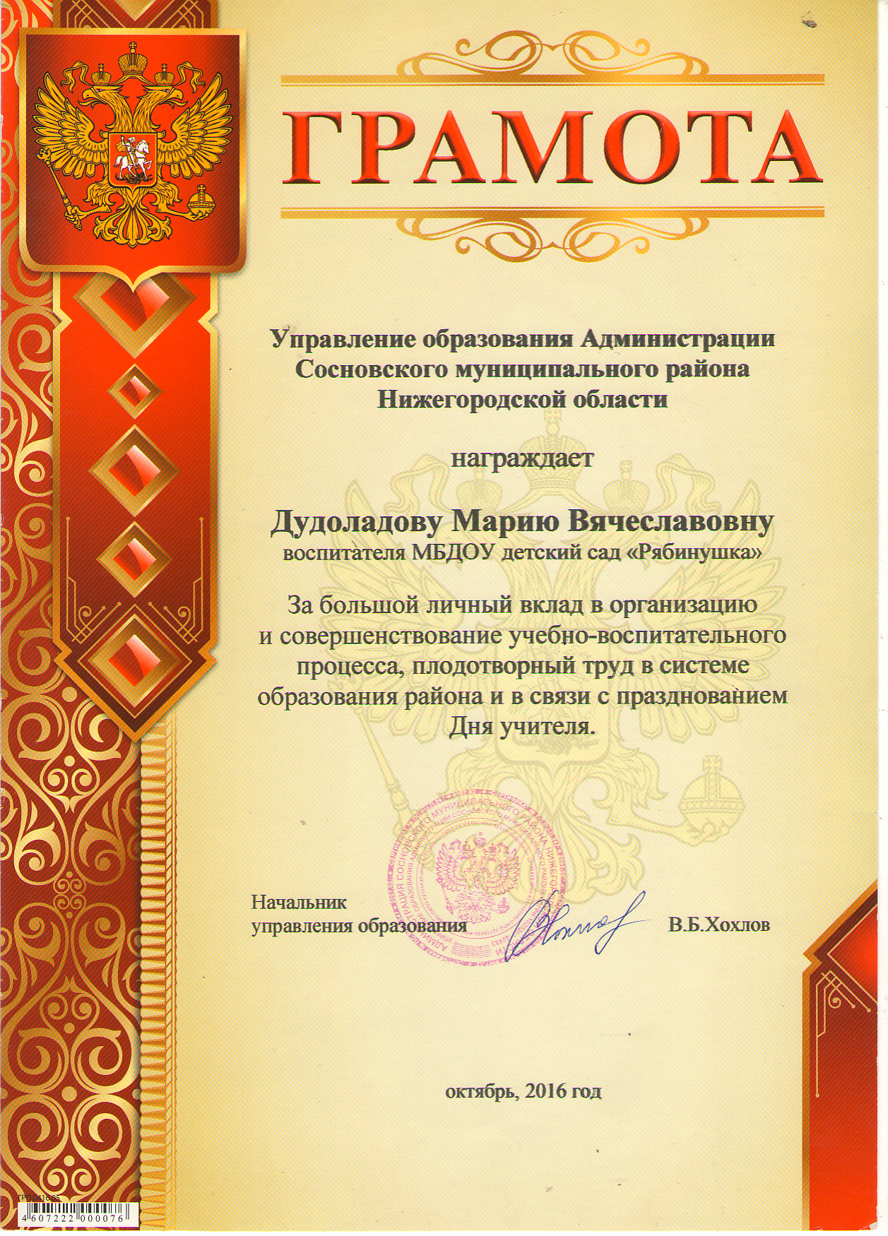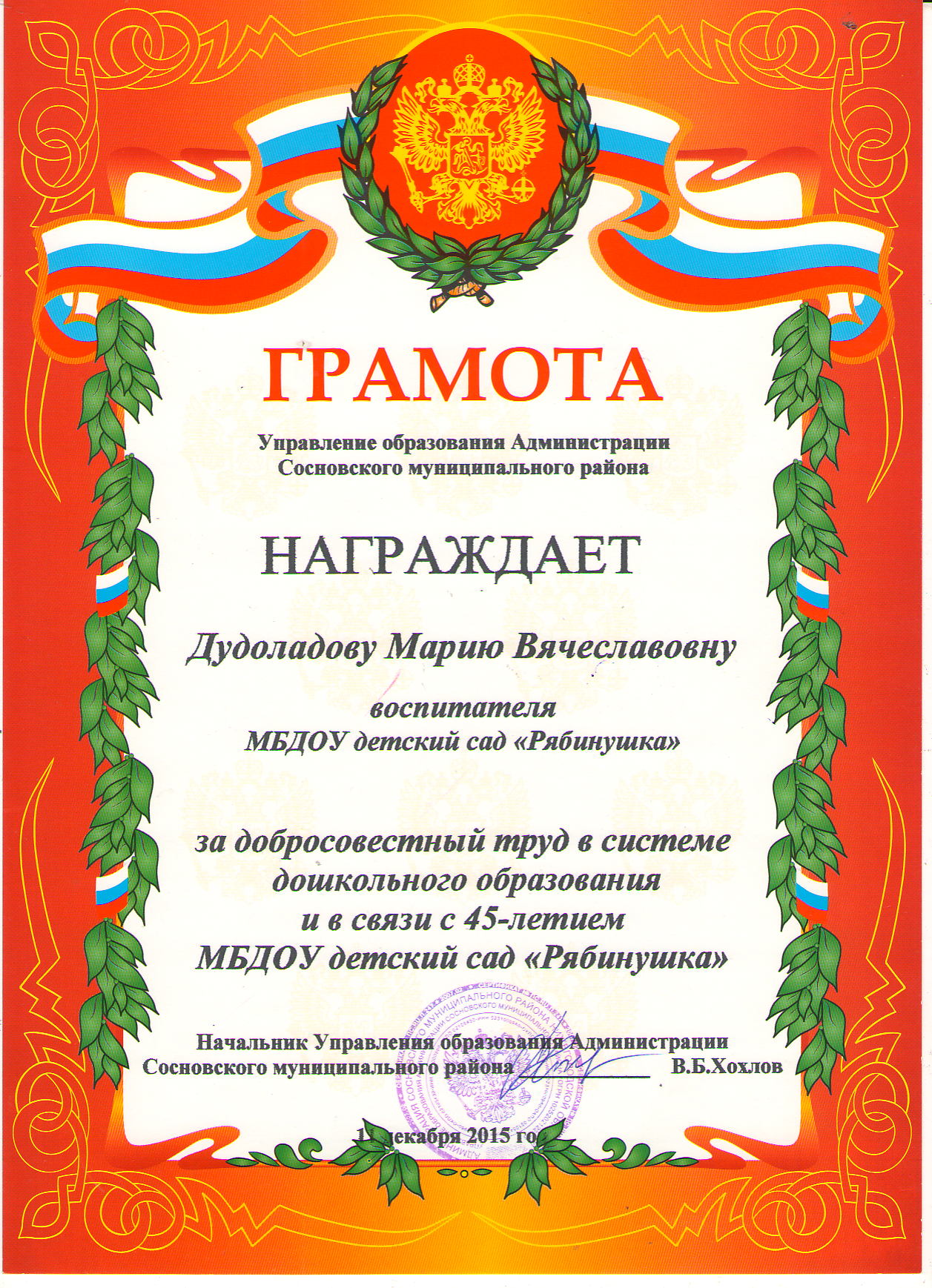 воспитателя первой квалификационной категории МБДОУ детский сад "Рябинушка"