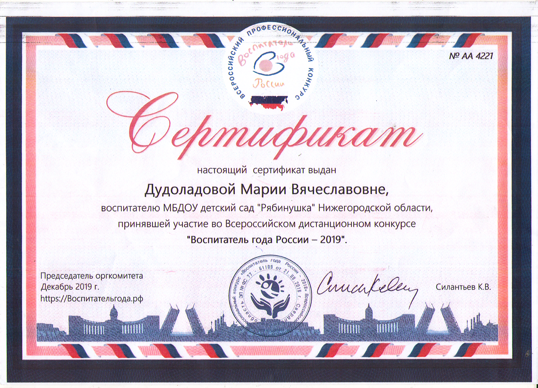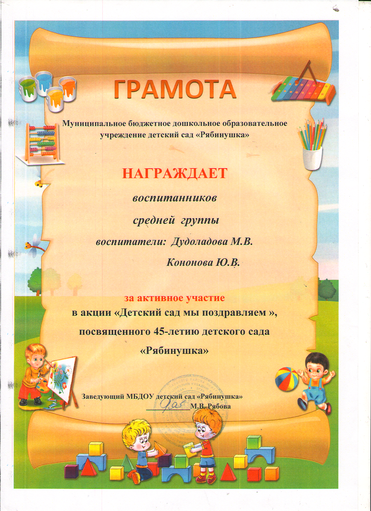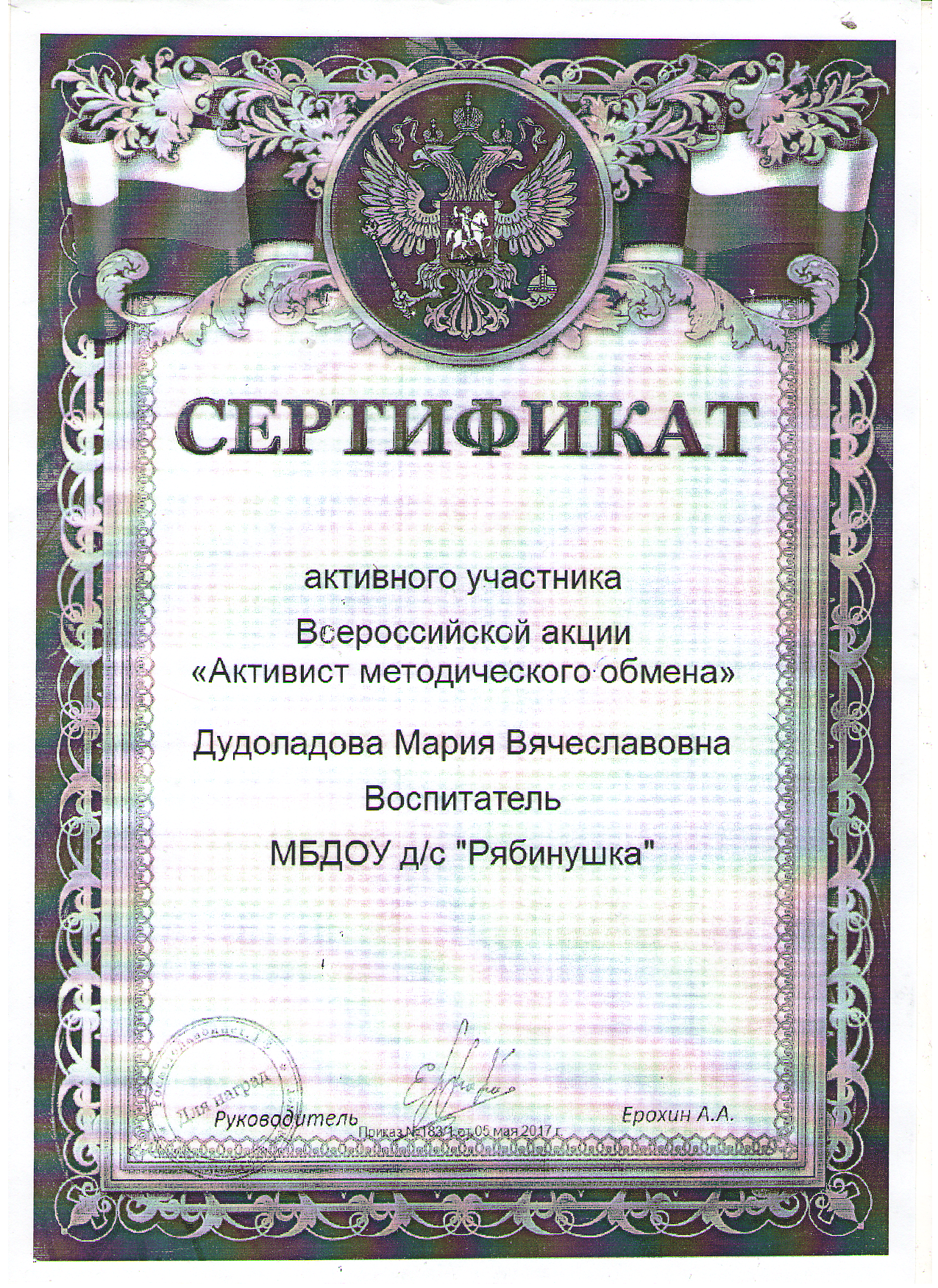 воспитателя первой квалификационной категории МБДОУ детский сад "Рябинушка"