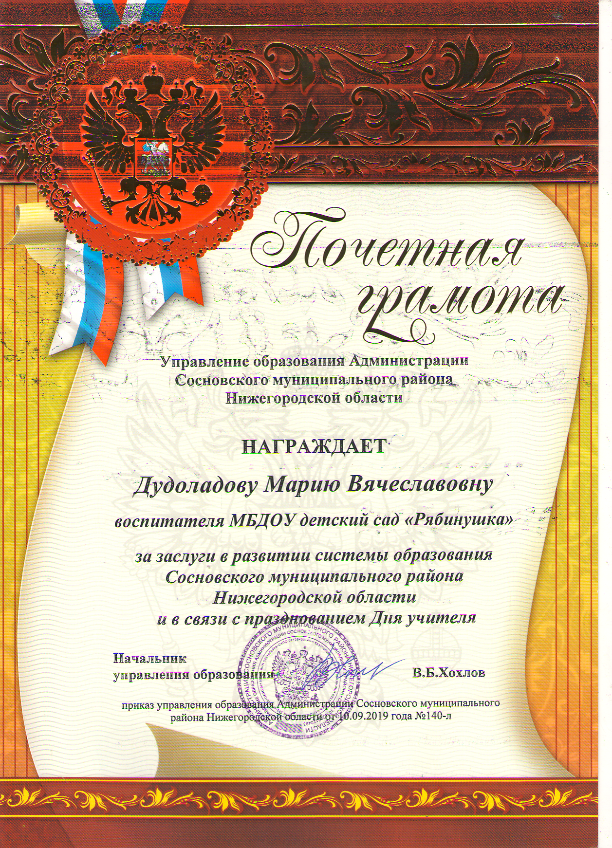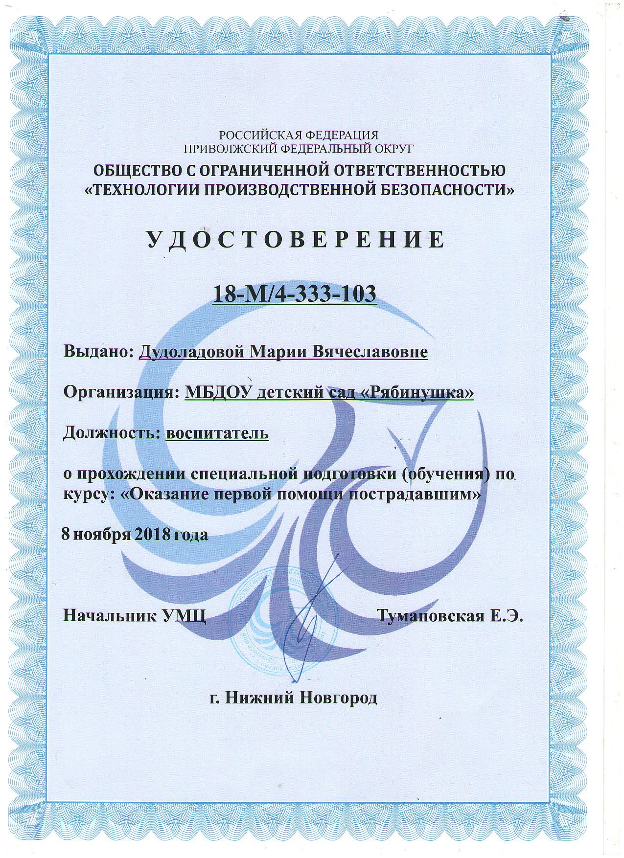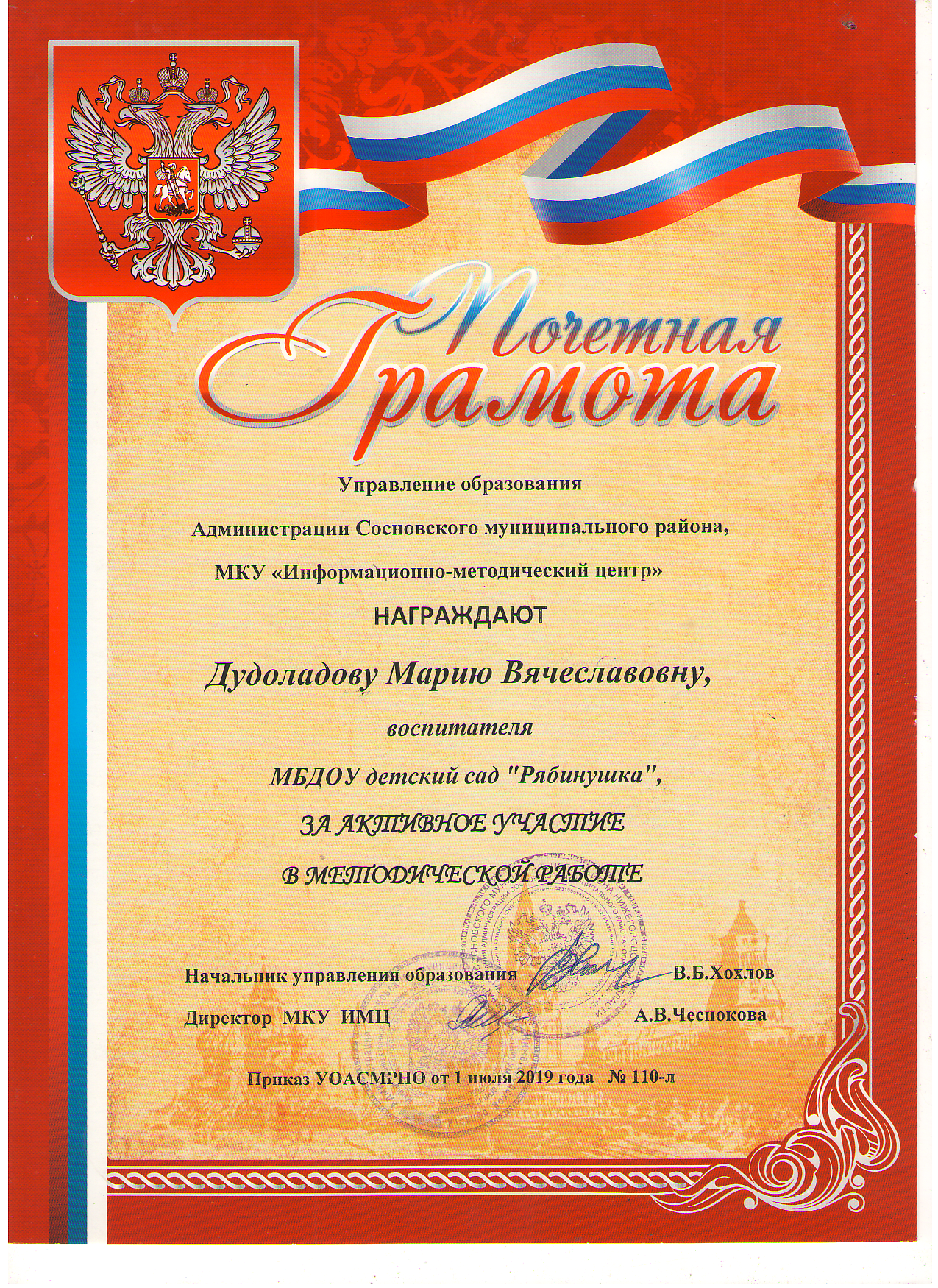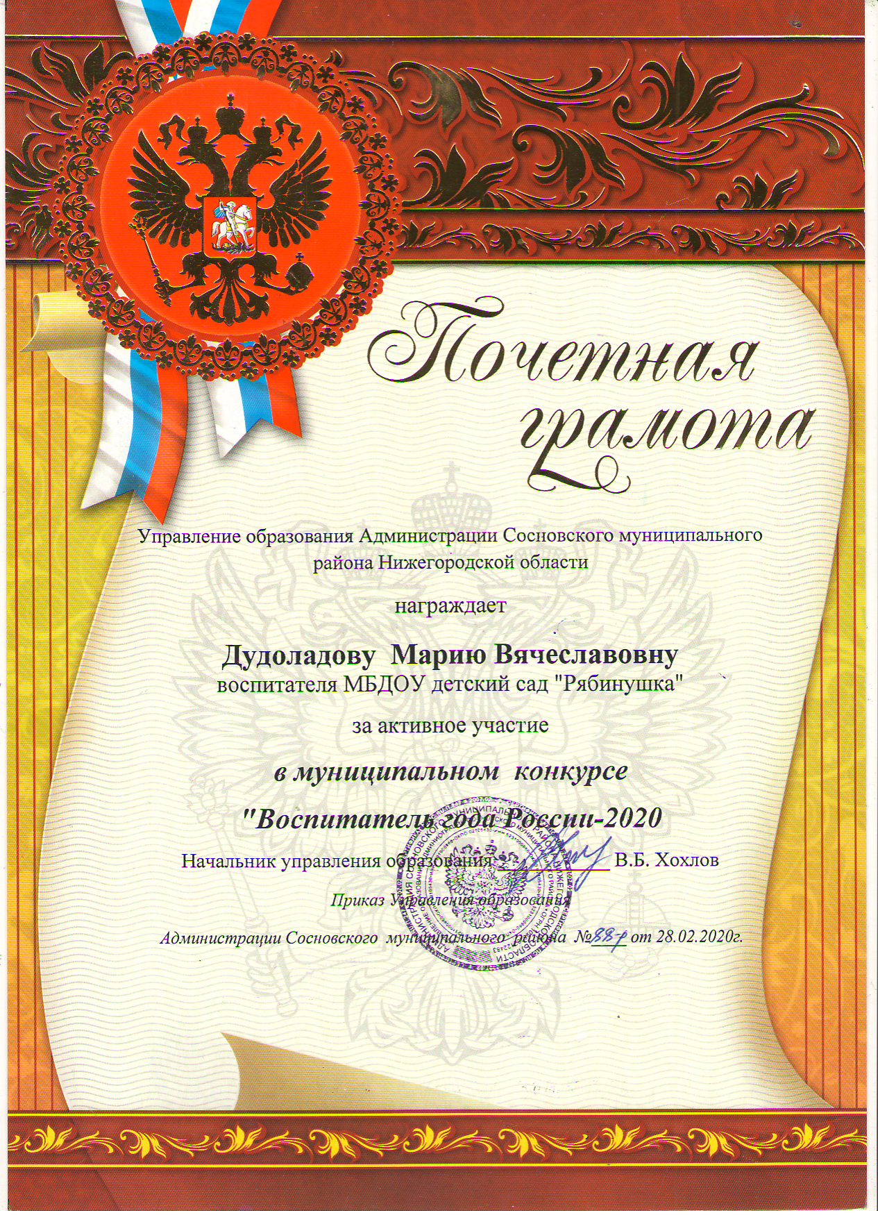 воспитателя первой квалификационной категории МБДОУ детский сад "Рябинушка"